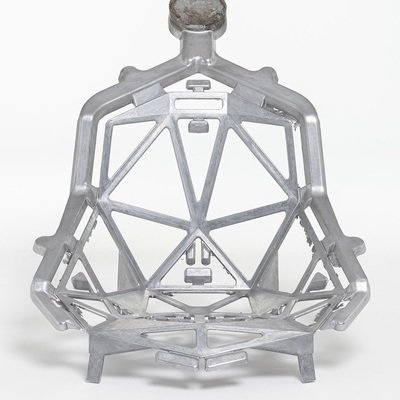 At that time, an unexplored territory that left space for creativity. The image of hot, liquid aluminium fired into the mould inspired a geometric design based on subtraction, with flat triangular elements joined at the edges and empty spaces characterising the aesthetics of the chair.